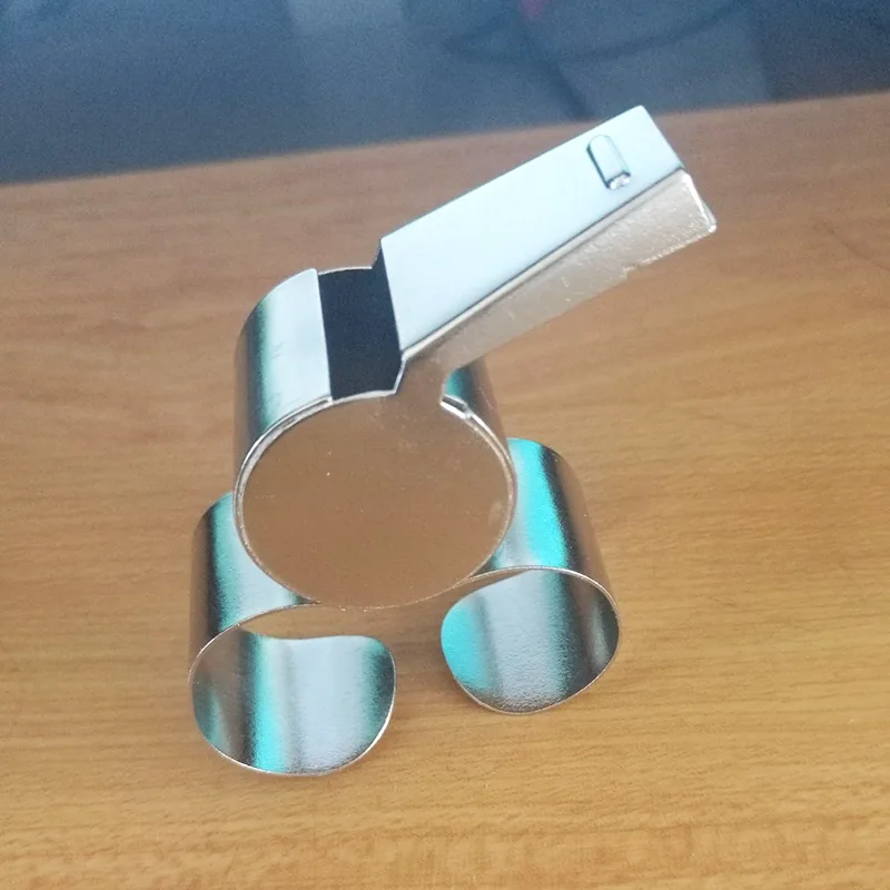Die Metal Finger Referee Whistles is gemaak van hoësterkte ABS-materiaal, wat liggewig, impakweerstand en weerbestandheid verseker. Dit handhaaf stabiele werkverrigting en weerstaan agteruitgang selfs in versengende son, reën of sneeu. Sy kompakte grootte maak dit maklik om te dra, sodat dit in 'n sak kan pas of direk op 'n vinger gly, gereed vir gebruik te eniger tyd.
